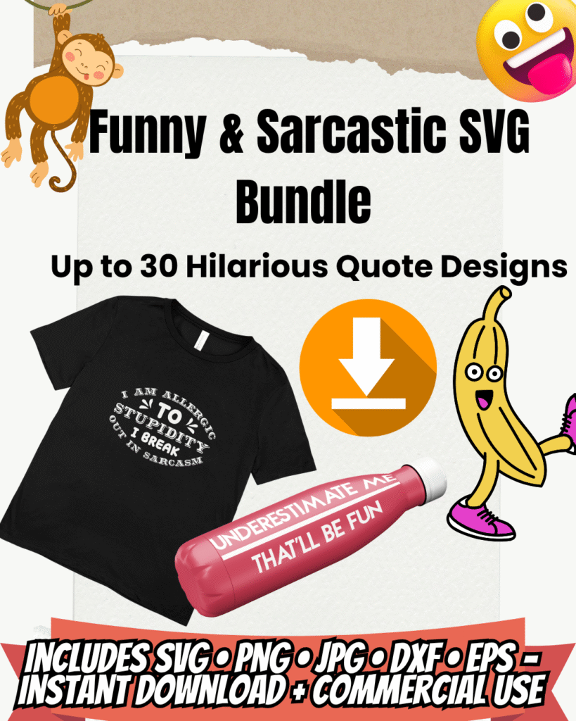Funny and Sarcastic SVG Bundle – Up to 30 Hilarious Quote Designs for Cricut, Silhouette & POD (SVG, PNG, EPS, JPG, DXF)