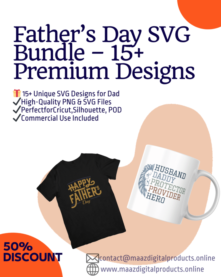 Father’s Day SVG Design Bundle |15+ Dad SVG PNG Files – Commercial License Included